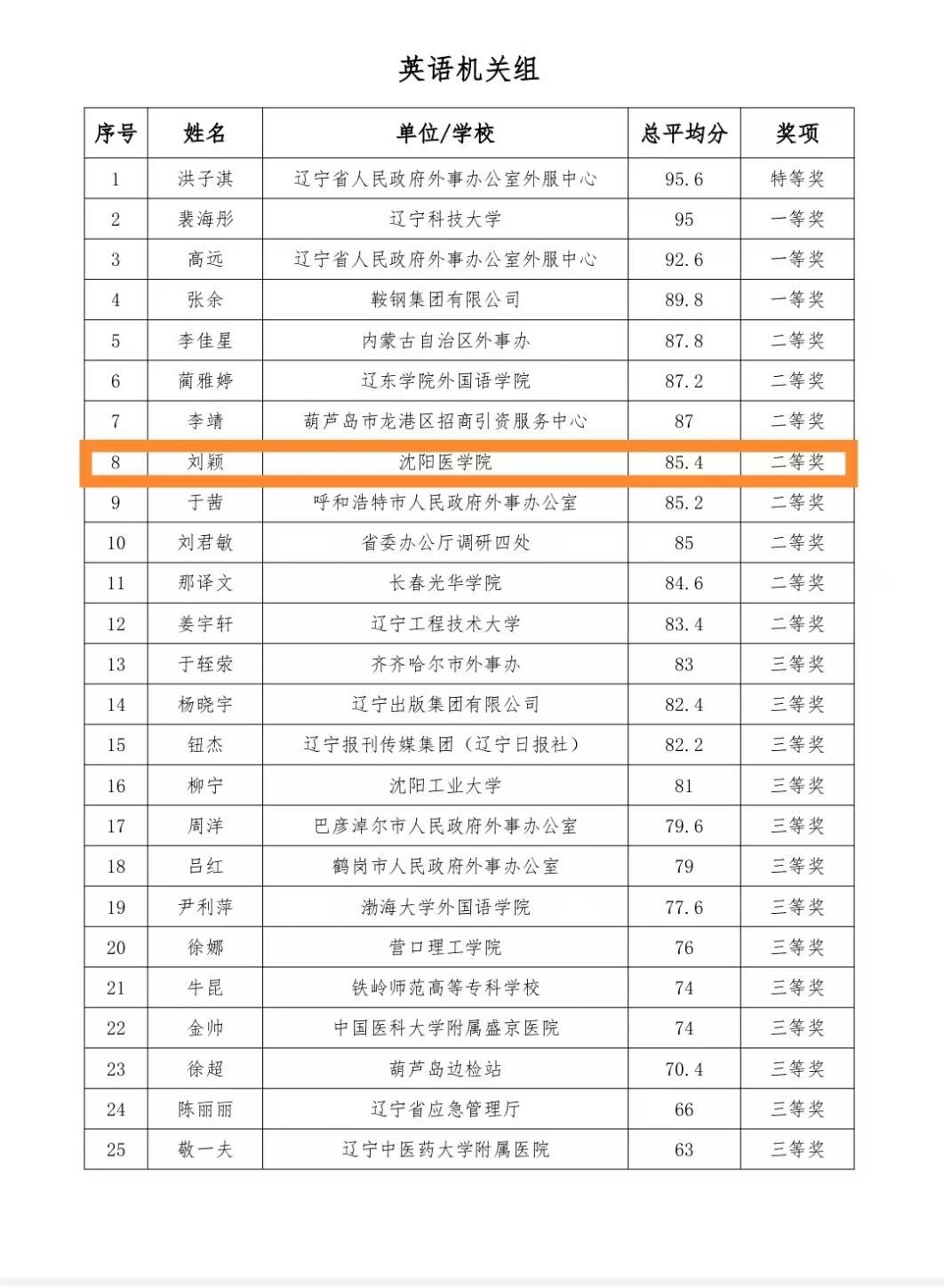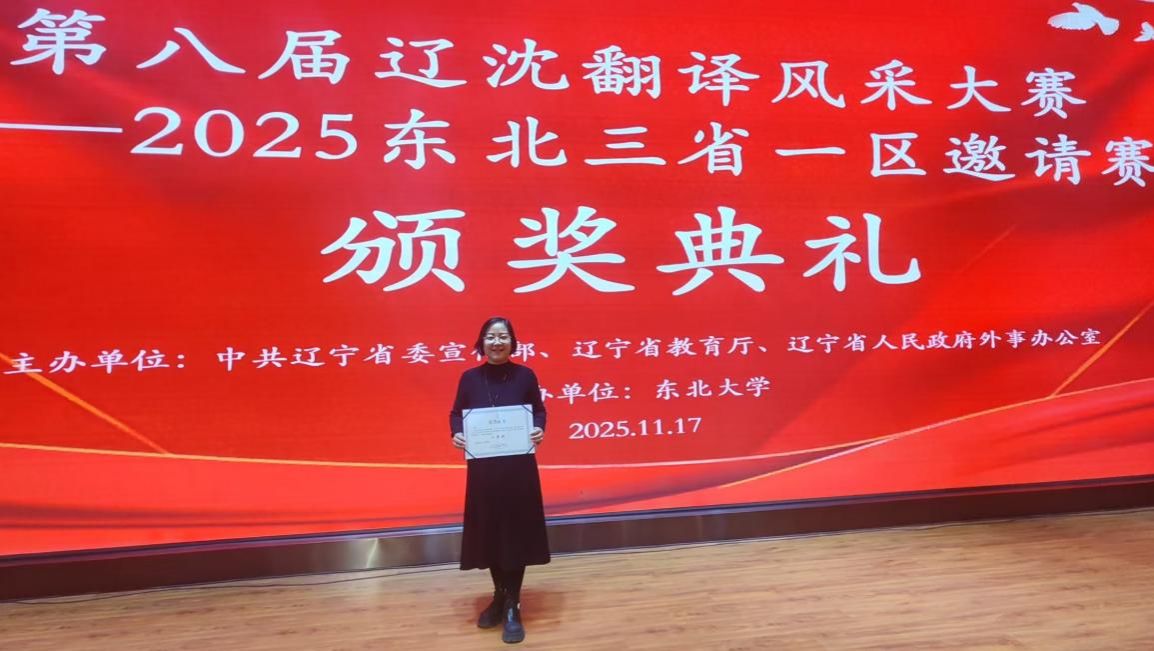 近日,由中共辽宁省委宣传部、辽宁省人民政府外事办公室、辽宁省教育厅联合举办的第八届辽沈翻译风采大赛——2025东北三省一区邀请赛在东北大学圆满落幕。本次大赛吸引了来自辽宁、吉林、黑龙江、内蒙古四地党政机关、高校及企事业单位的翻译精英同台竞技,各组别、各语种参赛总人数达479人,经过激烈角逐,最终143名选手成功晋级决赛。公司谈球吧官方网站刘颖老师凭借扎实的专业功底、深厚的知识储备和出色的临场发挥,在强手如林的竞争中脱颖而出。她在主题演讲、视频摘要和交替传译三个环节中,充分展现了其扎实的语言基本功、敏捷的思维应变能力、深厚的跨文化交际素养和过硬的专业实力,最终以总排名第8名的优异成绩,荣获机关英语组二等奖!其排名在沈阳地区所有高校参赛教师中高居榜首,获得了大赛评委的高度认可。