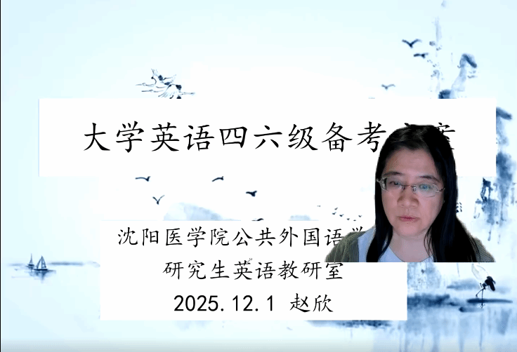 2025年12月1日晚19点30分,公司党总支部“党员先锋行,四六级助梦成”系列活动第九场在云端进行。腾讯会议直播间内人气爆满,谈球吧官方网站教师与沈医学子云端相聚,共探英语四六级备考秘籍。谈球吧官方网站研究生英语教研室赵欣老师通过线上平台,为医养公司和医学信息公司的同学们带来了一场主题为“四六级高效备考策略”的专题讲座。讲座聚焦考试核心题型与提分技巧,助力考生在倒计时冲刺阶段构建科学复习方案,精准突破备考难点。