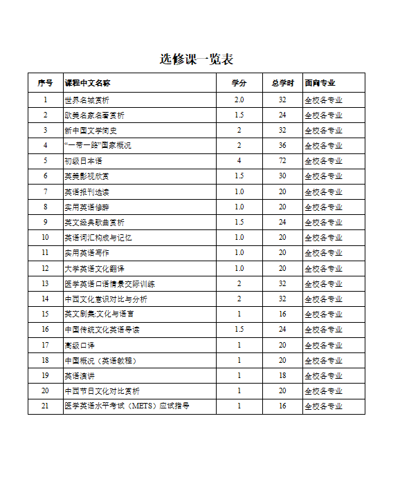 选修课一览表